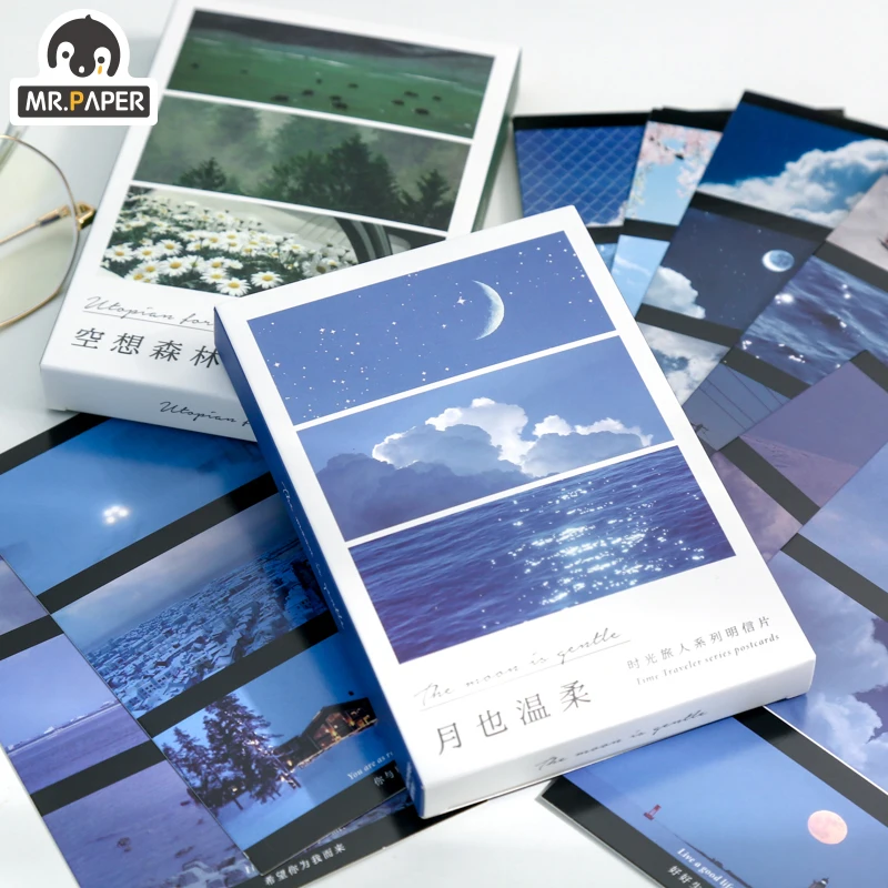 Name: El Sr. De papel 30 unids/caja 2 diseños Sakura viajero del tiempo serie Ins tarjetas postales con estilo de escritura creativa de felicitación decoración Collage Material